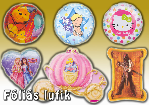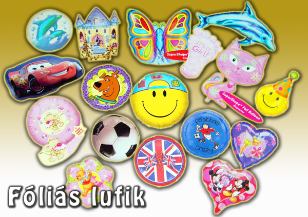 És nem utolsó sorban FÓLIÁS és GUMI LUFIK minden formában, mennyiségben. Zenélő lufi, Figurás lufi, Sétáló lufi, Számos- és Betű lufik, kicsi, nagy, kerek, hosszú, mintás és egyszínű lufik.